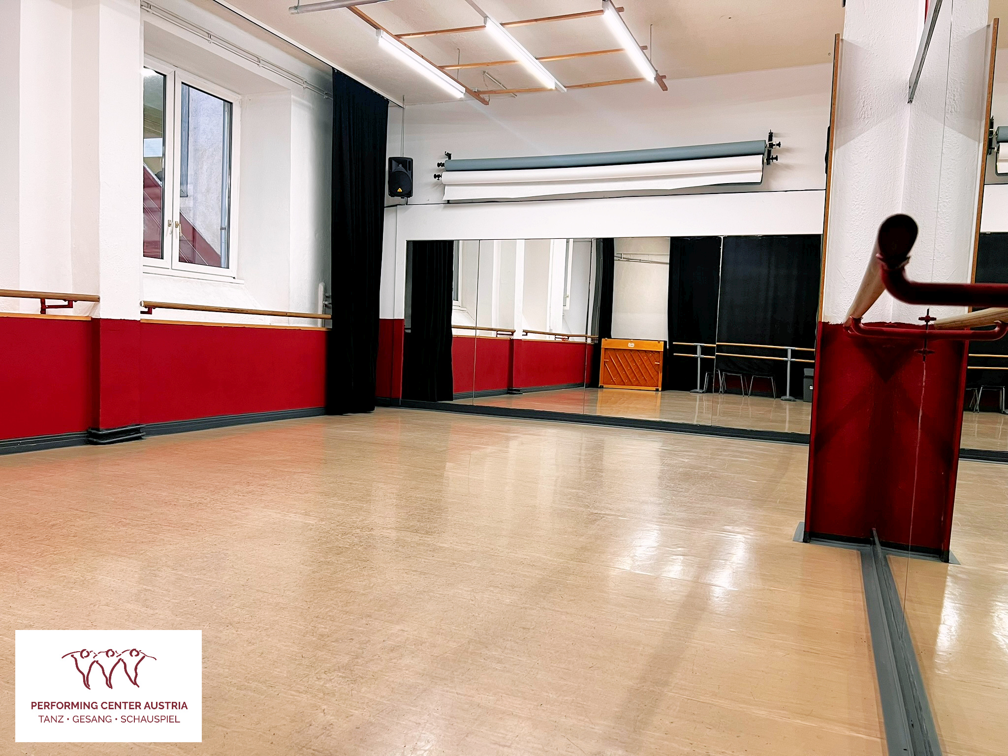 Mit 60 m² ist Studio 5 im Performing Center Austria ein kompaktes Universalstudio, das durch seine Vielseitigkeit für unterschiedlichste Anlässe genutzt werden kann. Es befindet sich im Hochparterre vor der Rezeption und verfügt über Fenster zu einem ruhigen, begrünten Innenhof. Dank seiner unmittelbaren Nähe zum Haupteingang ist es besonders leicht und unkompliziert erreichbar. Studio 5 eignet sich sowohl als Tanz- oder Gesangsstudio wie auch für kleinere Gesangs- und Schauspielcastings. Häufig wird es darüber hinaus als Fotostudio gebucht.